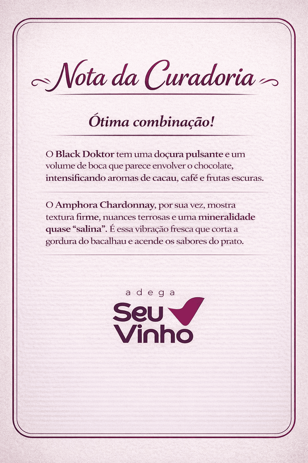 Sirva o Black Doktor levemente gelado para realçar seu dulçor e a Amphora Reserva Chardonnay a uma temperatura entre 8°C e 12°C para evidenciar seus aromas. Aproveite para harmonizar com pratos típicos da Páscoa e tornar a celebração ainda mais memorável.